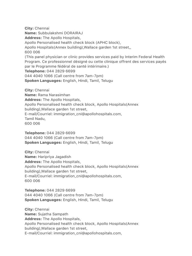 Visa Medical Checkup In Chennai Apollo Hospitals