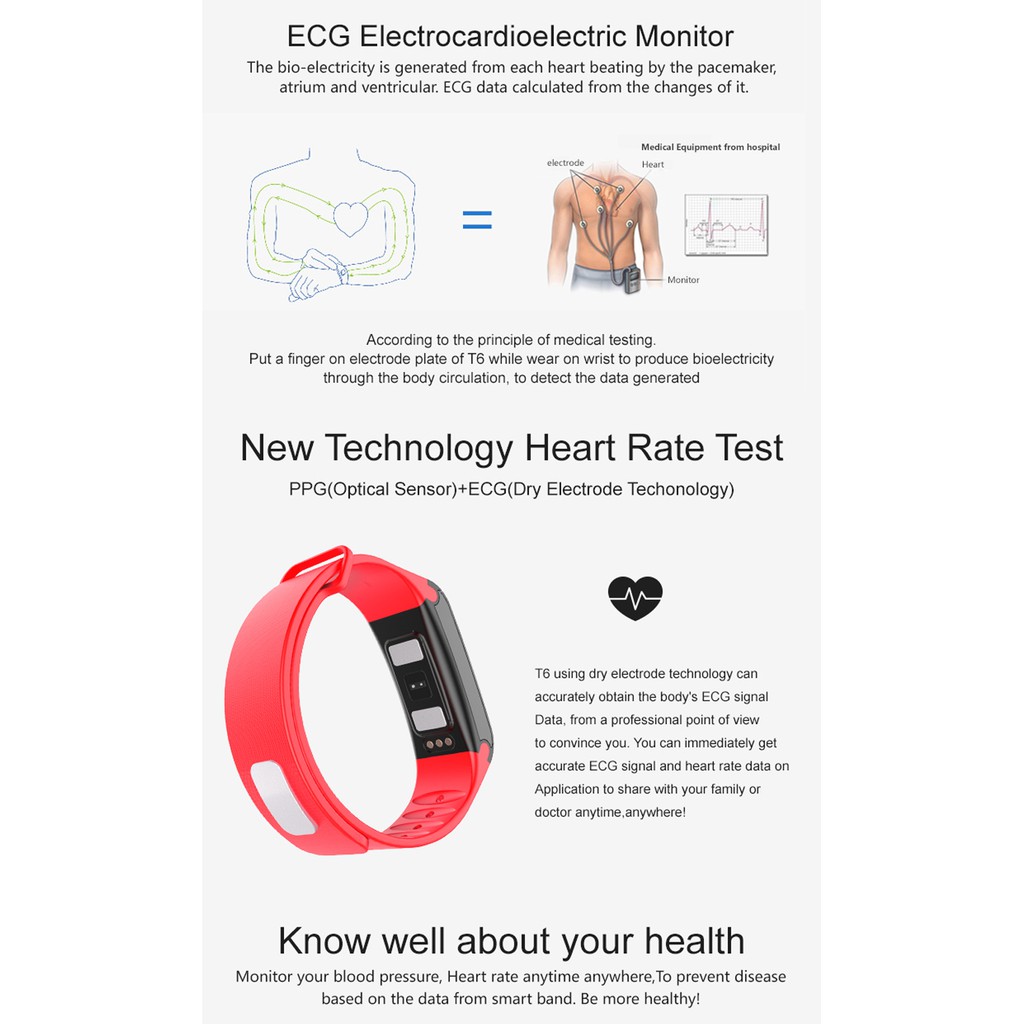 t6 ecg ppg blood pressure fitness health smartband is important information with HD images sourced from all websites in the world. Download this image for free by clicking "download button" below. If want a higher resolution you can find it on Google Images.